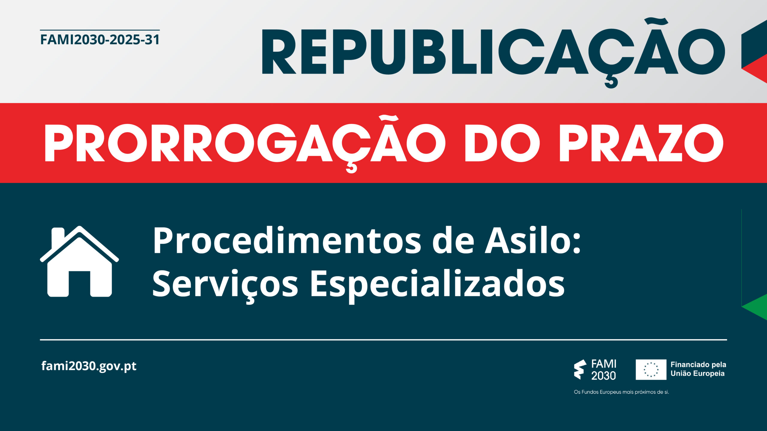 A Autoridade de Gestão do FAMI 2030 procedeu à republicação do aviso convite relativo a procedimentos de asilo e serviços especializados, na sequência de um pedido da AIMA, I.P., para prorrogação da data de fecho.